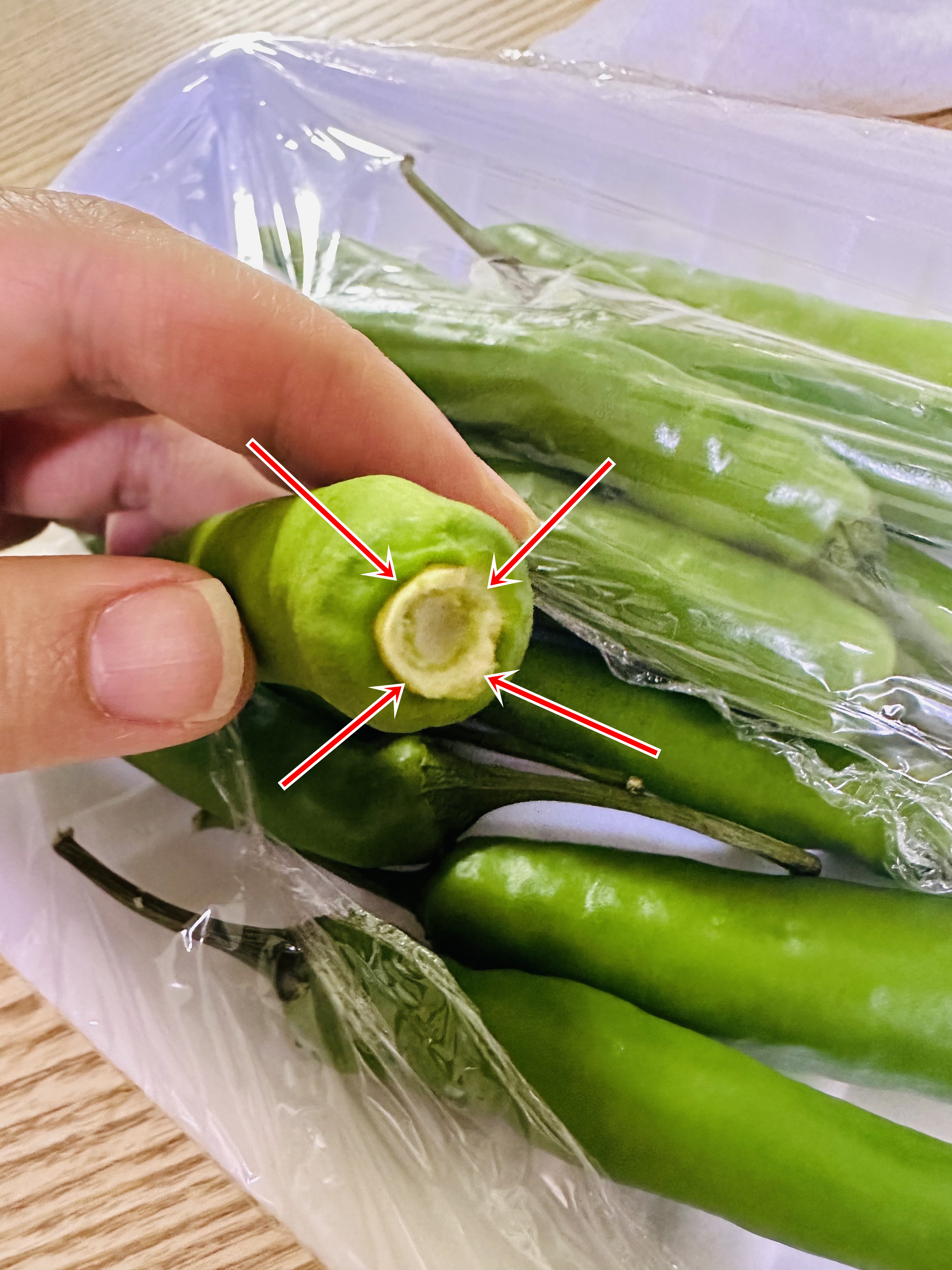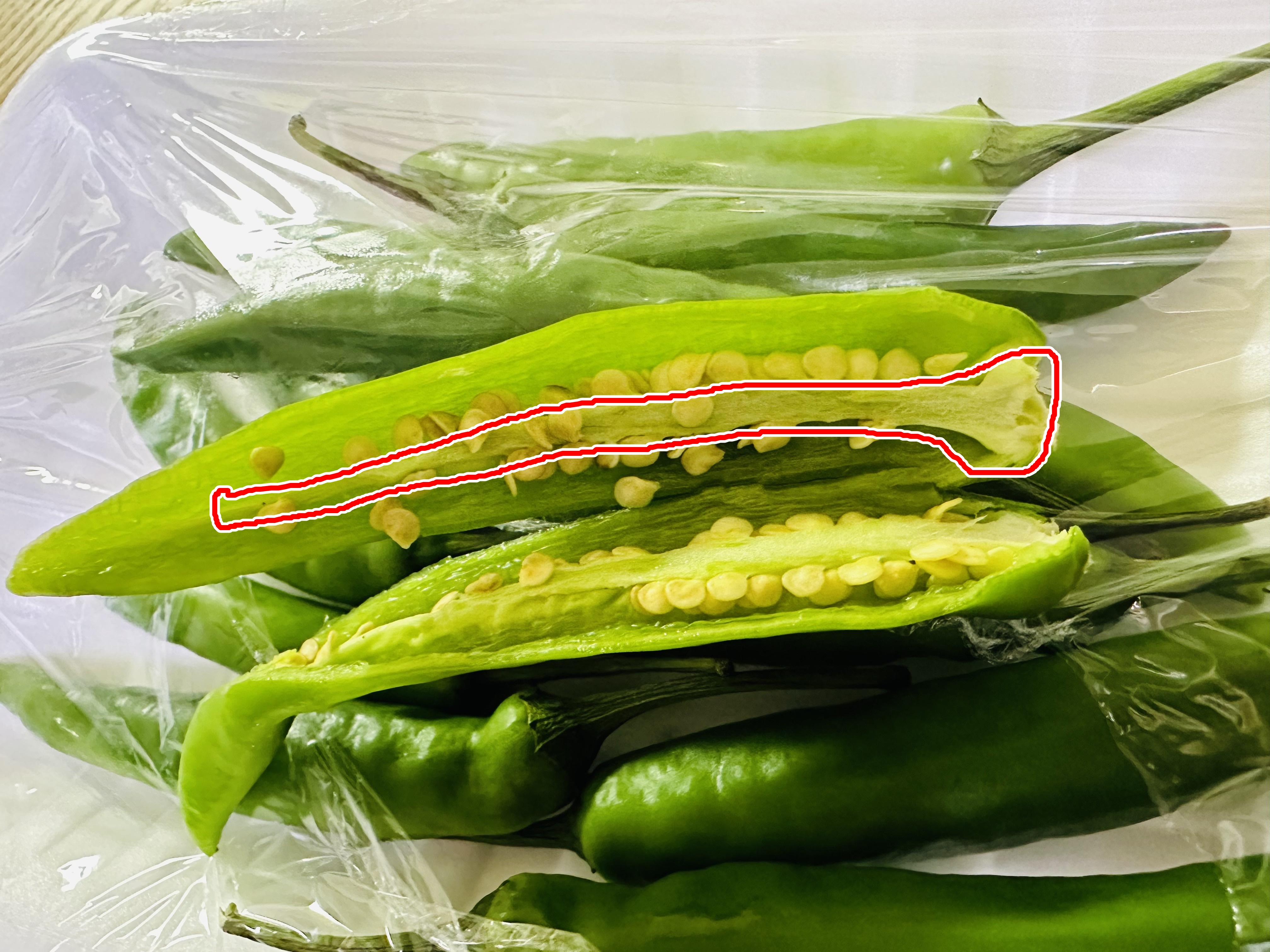사진으로 보시면 왼쪽(고추의 끝부분)보다 오른쪽(고추의 꼭지부분)이 훨씬 태좌가 많은걸 확인하실거에요.