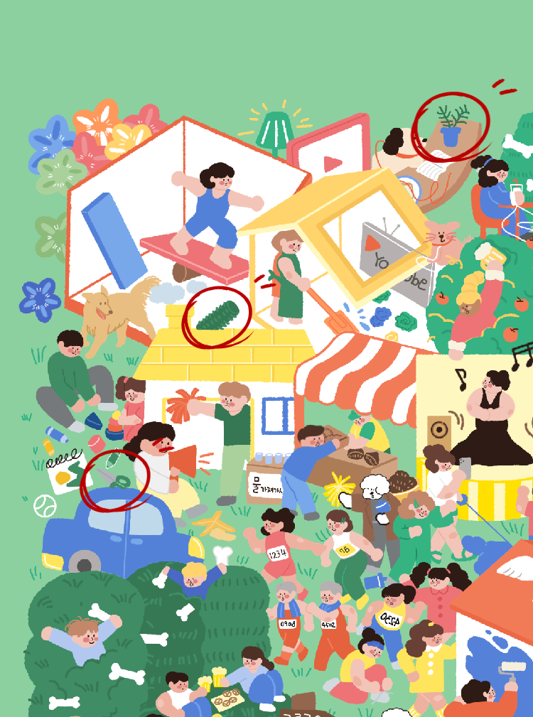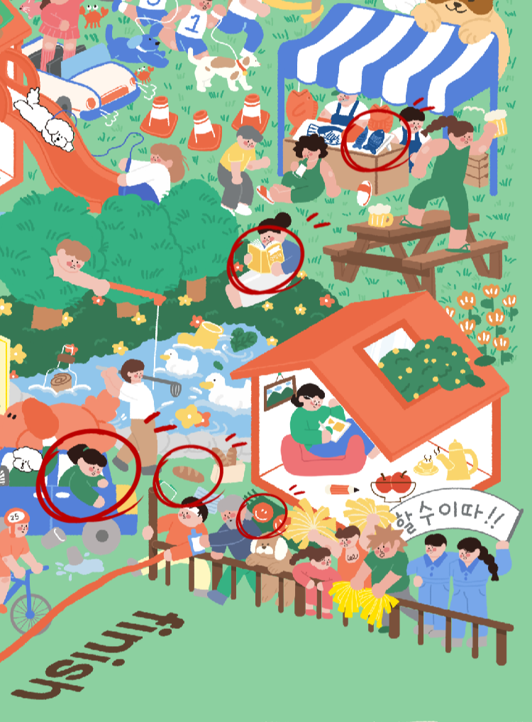 색감이 화려하지만 찾는 대상들의 난이도가 높지는 않았습니다.