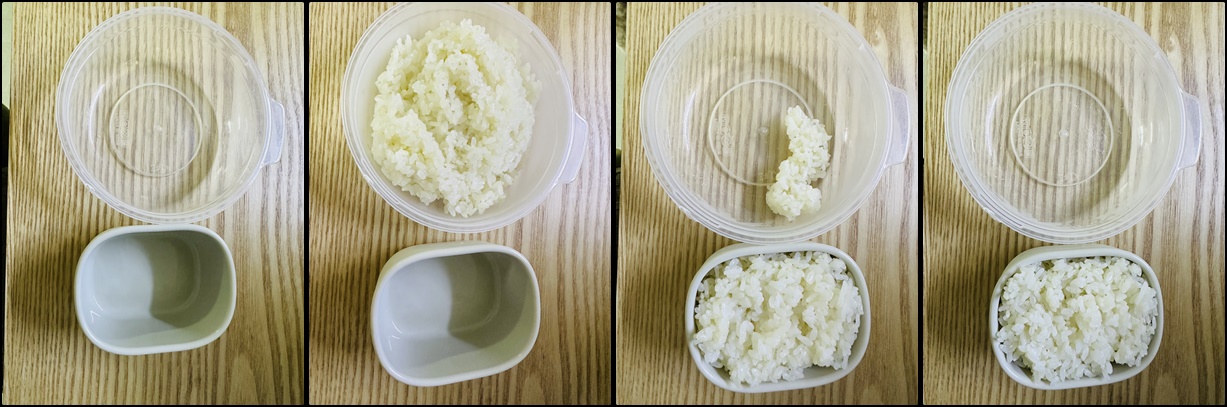 기존 사용하던 용기에 기존에 담았던 만큼 밥을 담고 실리팟에 옮겨봤어요~