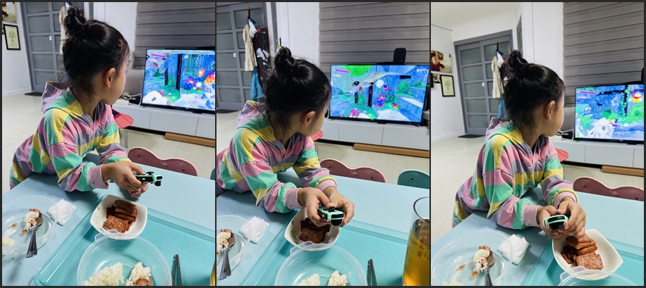 그사이 돌아와버린 아이들을 위해 티비로 연결합니다.