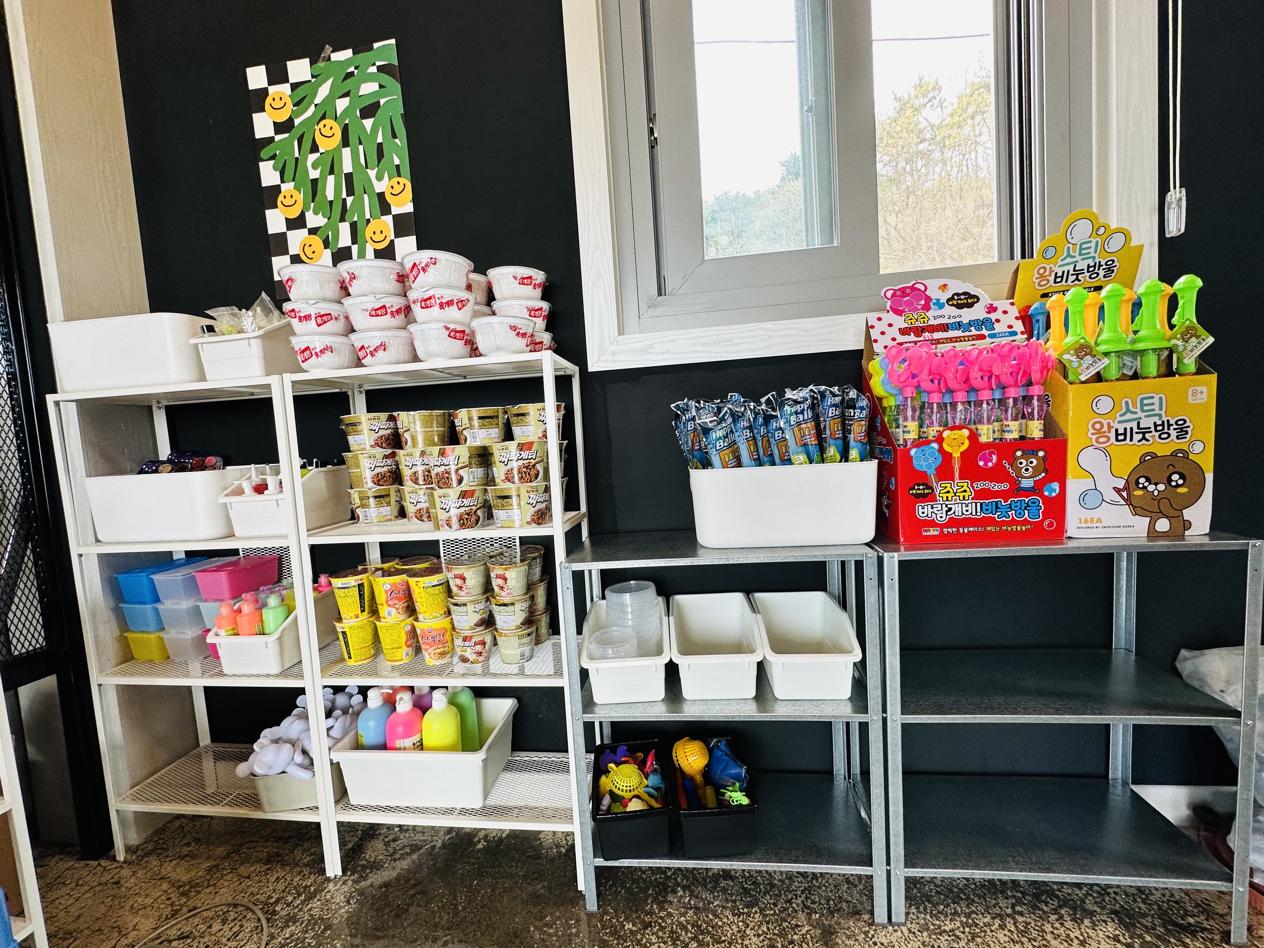 간단히 먹을 수 있는 식품과 1층야외에서 할 수 있는 놀이 용품들을 판매하고 있었어요~ ㅎ