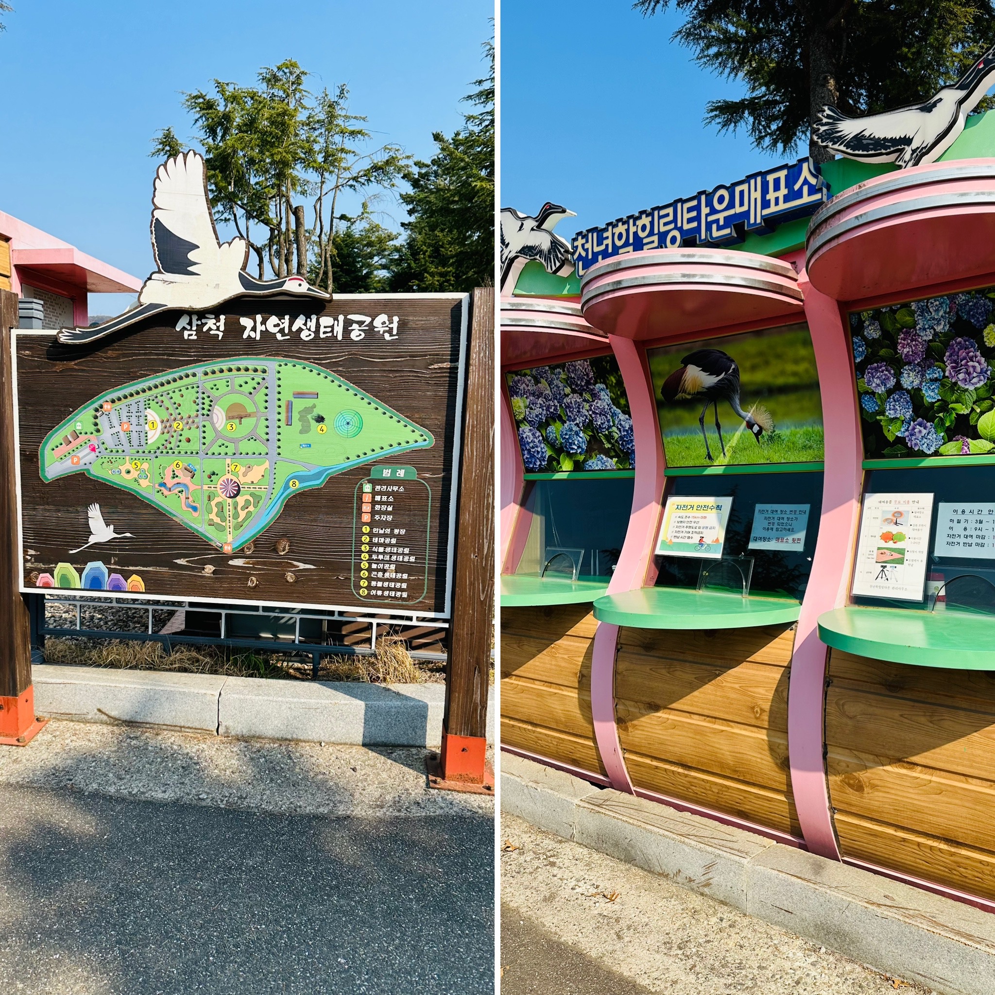 오늘은 부담없는 가족나들이 추천장소로 삼척에 "천년학힐링타운"을 소개할게요. 이곳은 입장료부터 물품 대여까지 모두 무료로 운영되고 있어요 작년 가을에 방문했을 때는 입구 맞은편 관리동에서 자전거 및 물품대여를 해주셨어요~ 당연히 관리동부터 가고 있는데 관리하시는 선생님께서 뒤에서 저희를 부르셔서 돌아봤더니 입구 안으로 대여소를 옮겼더라구요^^ 더 편리한 이용이 가능해졌어요!! 대여소에가서 대여할 자전거를 선택 > 자전거에 부착된 번호 확인 > 준비되어있는 서류에 대여시간 및 대여물품번호 기입 > 기본 2시간 대여 개인 자전거는 안전상의 이유로 반입이 안됩니다. 기본2시간 대여. 몇번방문했지만 준비된 자전거가 없어서 걱정할 일은 없었어요~ 아직 많이 알려지지 않아서 일까요? 기본대여시간 후 반납해도 되고 ..