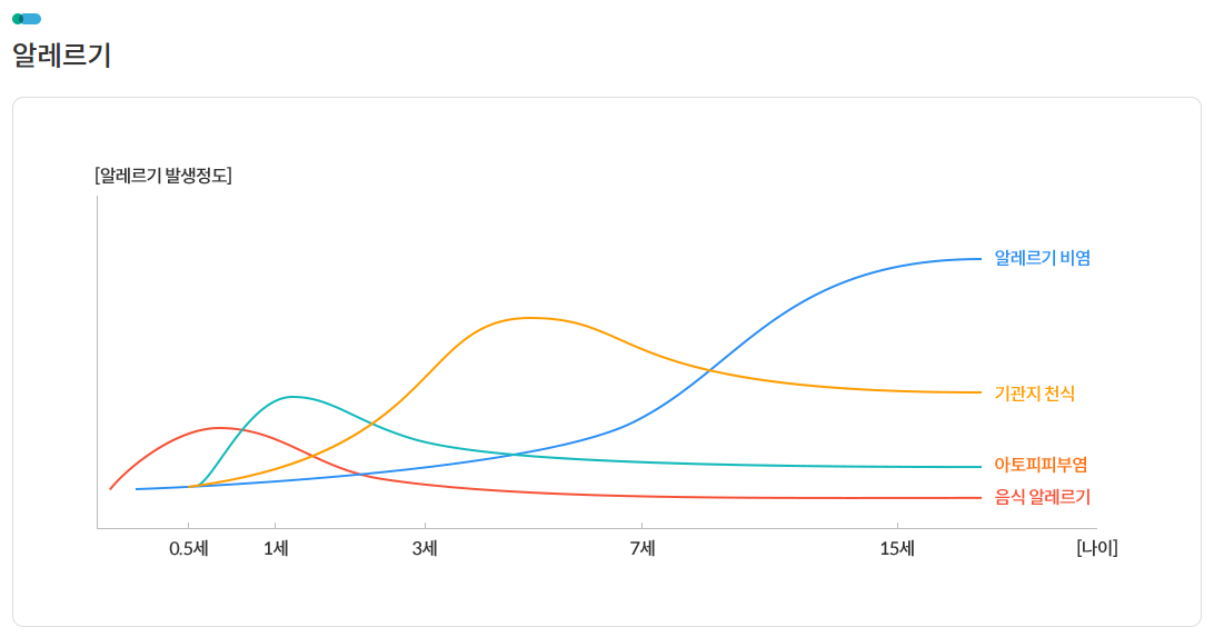 - 알레르기 행진, 나이에 따라 알레르기 질환의 양상이 다르게 나타난다.