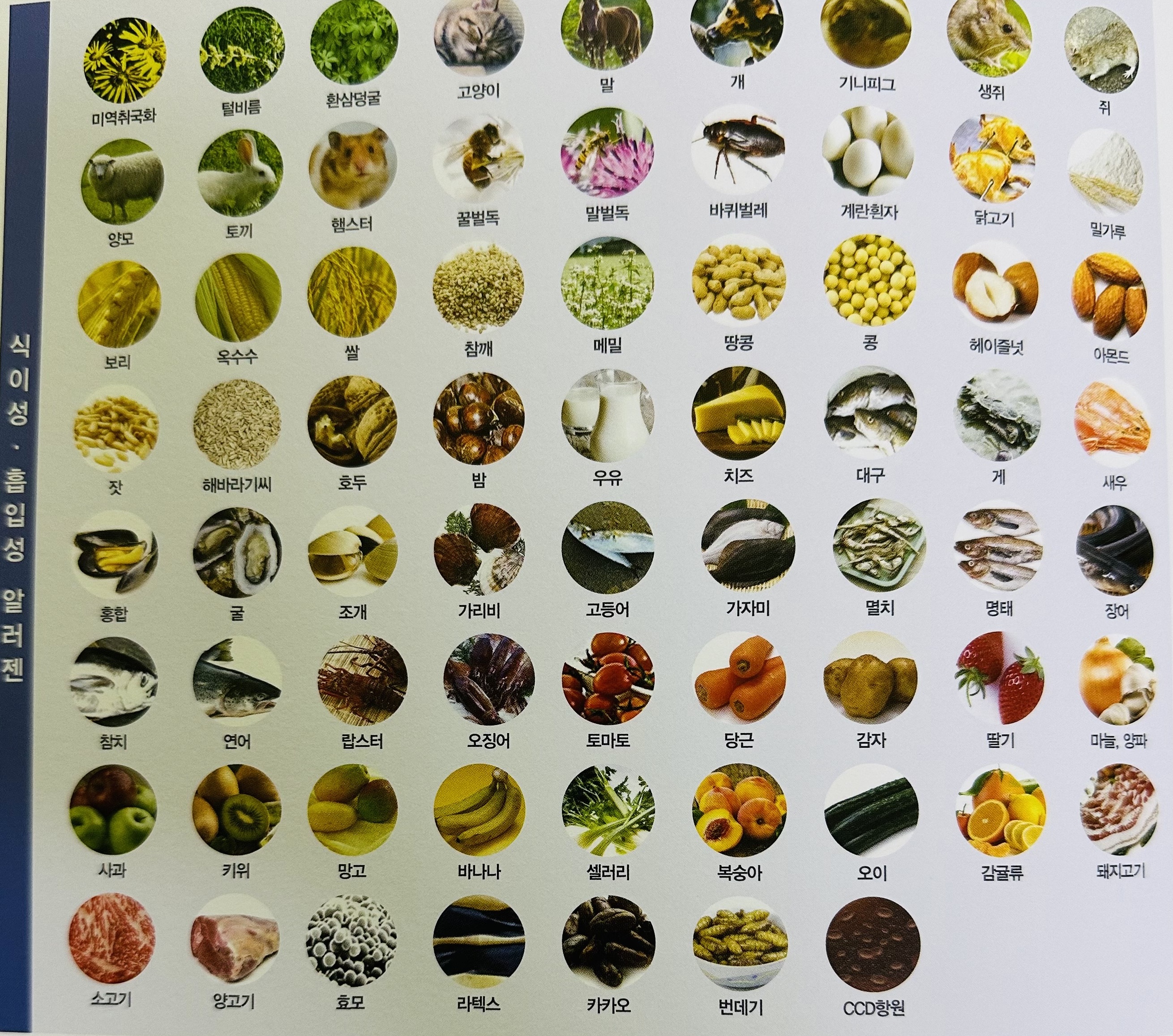한번의 체혈로 흡입성, 식이성 알러젠을 모두 포함한 107종의 검사를 할 수 있습니다.